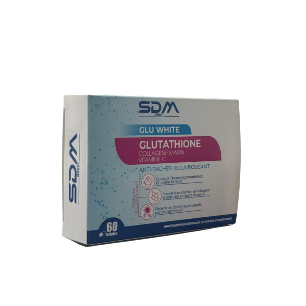 Le complément alimentaire SDM Glu White Glutathione est formulé pour aider à uniformiser le teint et protéger la peau des agressions oxydatives. Sa composition riche en glutathione, un antioxydant naturel puissant, agit de l’intérieur pour :