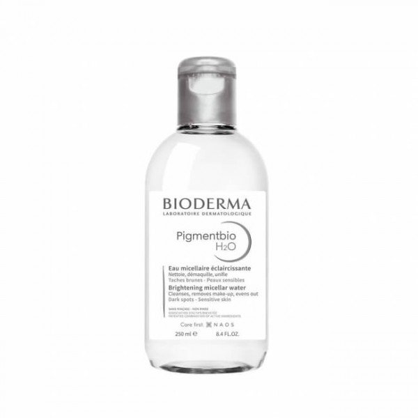 L’Eau Micellaire Eclaircissante H2O Pigmentbio de Bioderma est un soin visage destiné à nettoyer et démaquiller le visage et les yeux. Sa formule prévient les taches pigmentaires et unifie le teint.