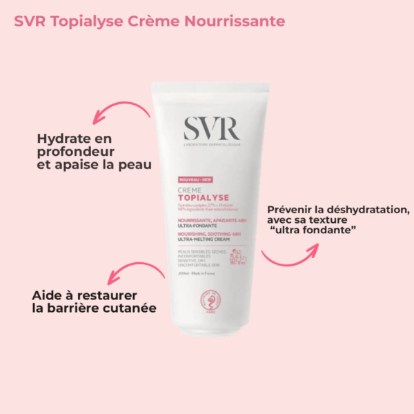 La SVR Topialyse Crème est un soin relipidant et apaisant conçu pour hydrater intensément les peaux sèches à très sèches et prévenir les irritations.