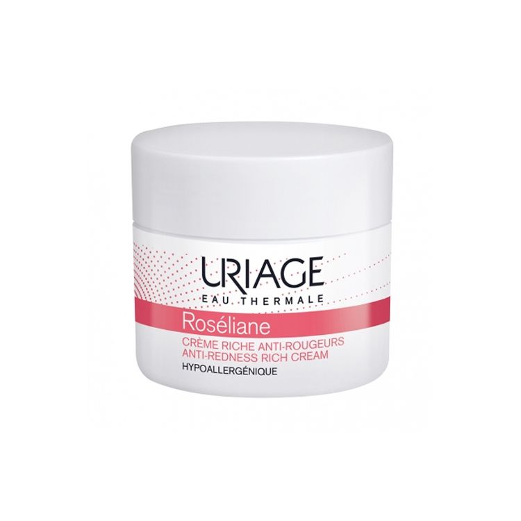 Utilisée en traitement de la rosacée, aussi appelée couperose, la crème riche anti-rougeurs Roséliane d’Uriage réduit visiblement les rougeurs. Elle apaise la peau enflammée du visage, l’hydrate et la protège.